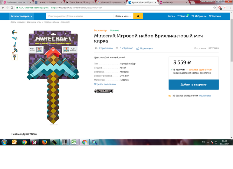 Попросил ребенок оружие из майкрафта (кирка вроде называется), я уже всю голову сломала,что лучше взять? Может у ваших детей есть и вы посоветуете?