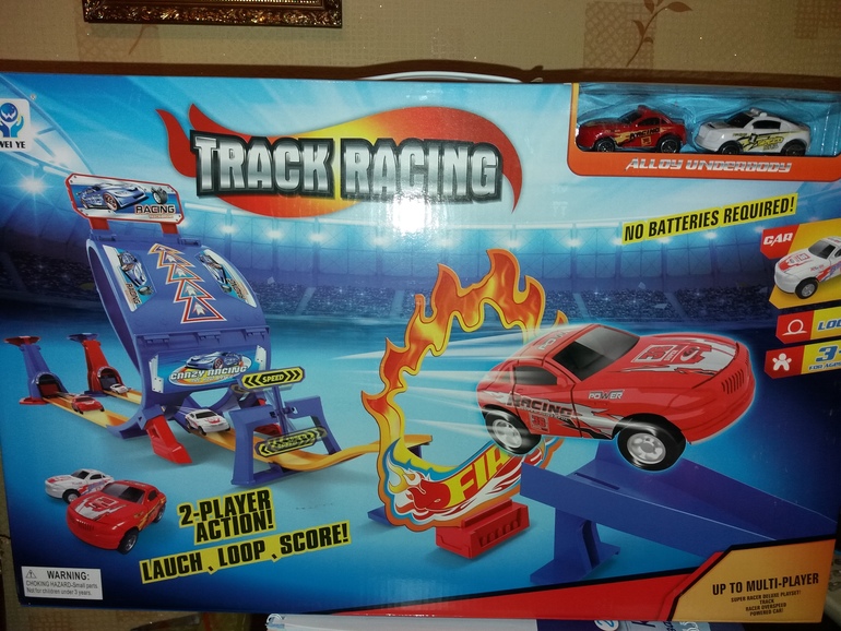 От моих родителей трек с пусковым устройством(вторая часть трека ждет на нг,там гонки на время а так же от них билеты на елку)