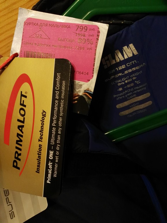улов: куртка слам на среднего, на прималофте, весит 230 гр, заявлена до минус 2...750р. Интересный итальянский бренд для яхтсменов, хотела ее)