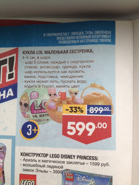 в Ленте сегодня видела по красному ценнику 599, обычная цена 899, но написано сестрёнки, я просто в них не понимаю ничего , у меня мальчики).Вот фото из каталога