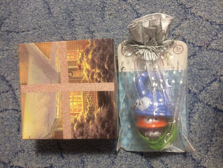 Настя полезла распаковывать коробочку, а малыши жевали пакет - все поняли кому-что )) Но тут мама забрала подарочки и сфотала