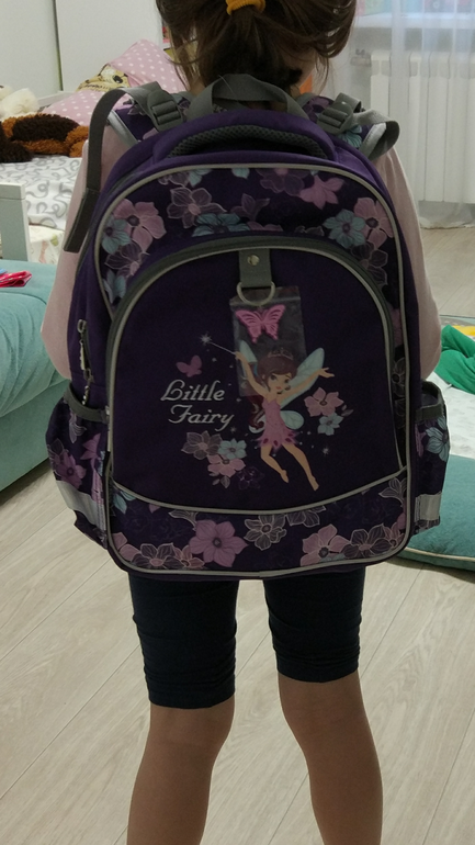 Разумеется, дочка носит рюкзак только от порога школы до класса.