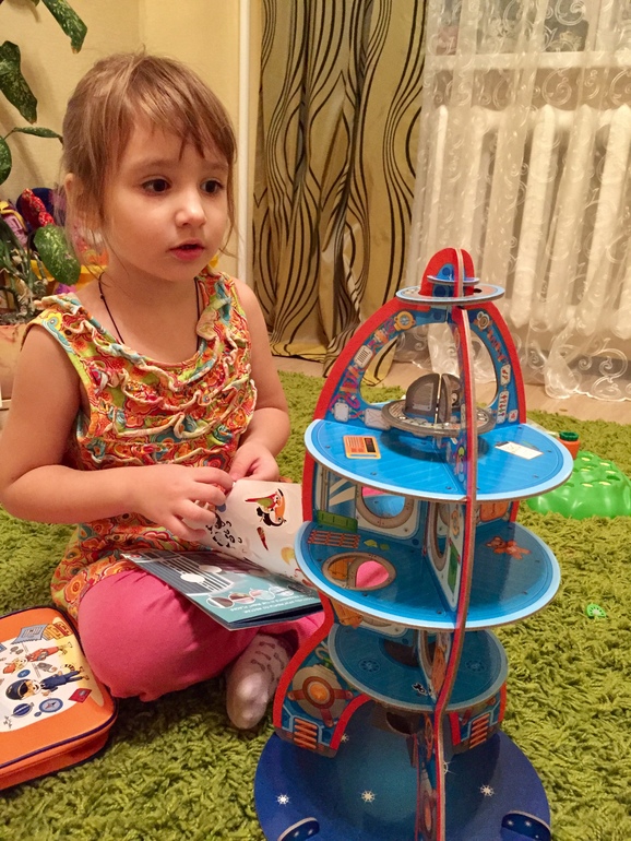 Дочке подарок очень понравился, уже 2 дня всех отправляет в космос и сама на ней уже пробовала полетать :) она тут приболела немного, так что подарок ее хоть оживил )