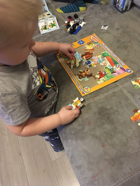 Младший схватился за пазл, сразу за дело)