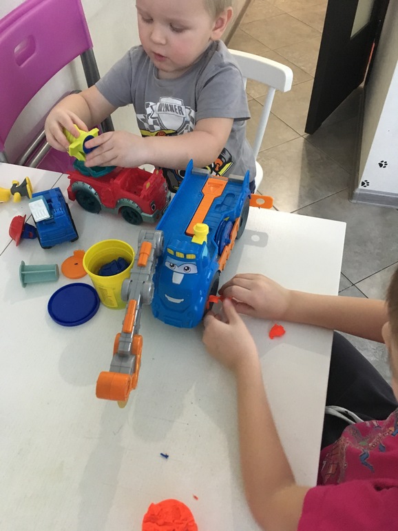 А это уже сегодня, в деле) Вспомнили и собрали все свои наборы Play do, и играли часа 2, а мама смогла заняться делами)