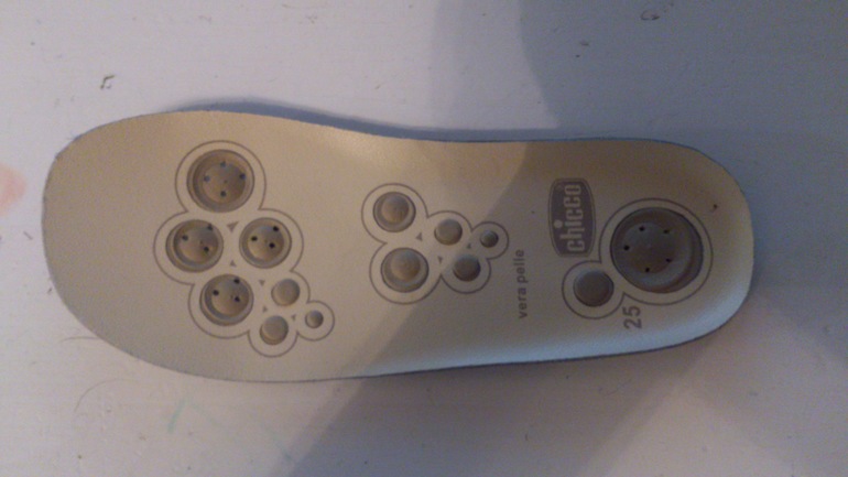 Приложила нашу стельку "под загиб" (ну как нога стоит, если бы загиба не было) от чикко: