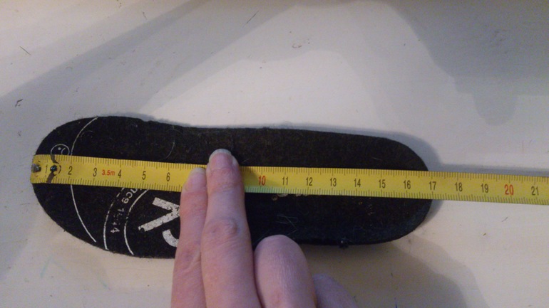 Что тоже самое? 22.1 или 21.7? Вы ногу ребёнка вставьте в ботинок и посмотрите где нога (не знаю, может приклейте липучку какую, кусочек плей до, чтобы точно понять где палец). А не рядом ставя стельку и думая, куда загиб пойдёт.