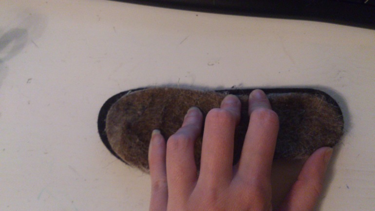 С моим освещением не вижу, нормально след от пальцев видно или нет. Но вырезала стелько без загиба как раз.