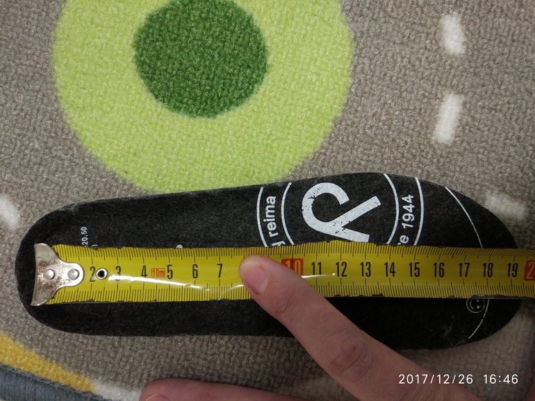 Проблема у меня со скидыванием фото на комп)). Как завтра уложу спать мелочь, смогу скинуть. А так - мы сейчас носим чикко 25, в которых заявлено 16 см - туда я вставила стельку шерстяную вырезанную по размеру - вот по ней отлично видно (по пальцу чуть ли не до дыры уже прожатому), что прям фактически впритык. Так что наши 15.7 подтверждаются этими ботинками. А в рейме 25, кторые носим одновременно с теми сейчас, отпечаток пальца фактически на смайле, что как раз тоже соответсвует выступу далее от смайла 1 см и общая 16.7 получается. Обещаю завтра подробно все фото сделать и выложить)). Сейчас уже гонят в кровать укладывать.