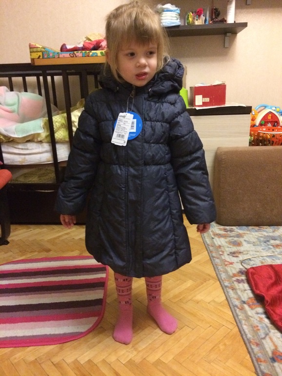 Пальто 104 размера село с запасом, но небольшим. Можно уже носить. А я рассчитывала, что оно большемерит и на следующий год хотела. Но может и следующей зимой будет хорошо. Качество понравилось, и на худышке сидит отлично. Кстати оно не чёрное. Дома кажется серым, на улице темно синим. Цвет намного интереснее, чем на католожном фото.