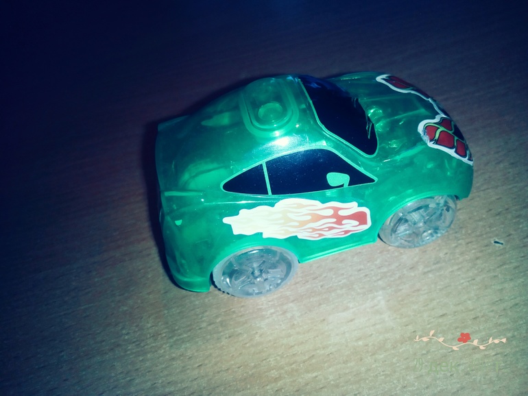 Да это китайский товар. копия это с маленькими джипиками и одной батарейкой. Там и трек не оч светится. И машинка цепляется за трек. Мы купили на megahitzz точка ру оч довольны. С 2мя батарейками машинка и кнопка сверху. Вот это оригинал