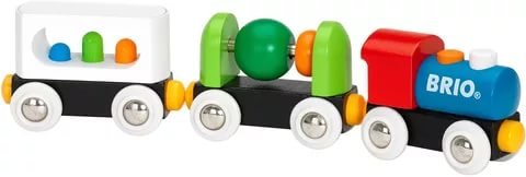 Разделённый мной на 3 подарка, поезд brio, конечно, пришёлся ко двору, но какого-то прямо восторга не вызвал: прошёл, скорее, по статье "о, очередной вагончик к железной дороге, ну класс, пусть будет". А я на него рассчитывала))