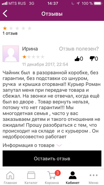 Здравствуйте. Ситуация не допустима для работы нашего магазина, мы ценим каждого нашего Покупателя, для утонения информации Вы можете сообщить номер заказа. С уважением, интернет-магазин Wildberries.