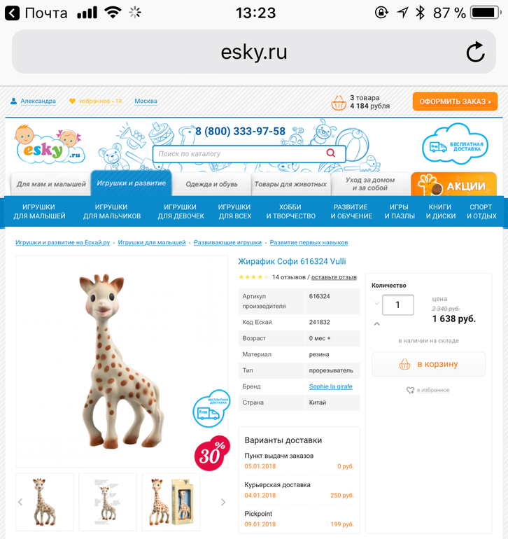 ИгрушкиКто искал жирафика Софи - сейчас он в Esky.ru по 1630₽.