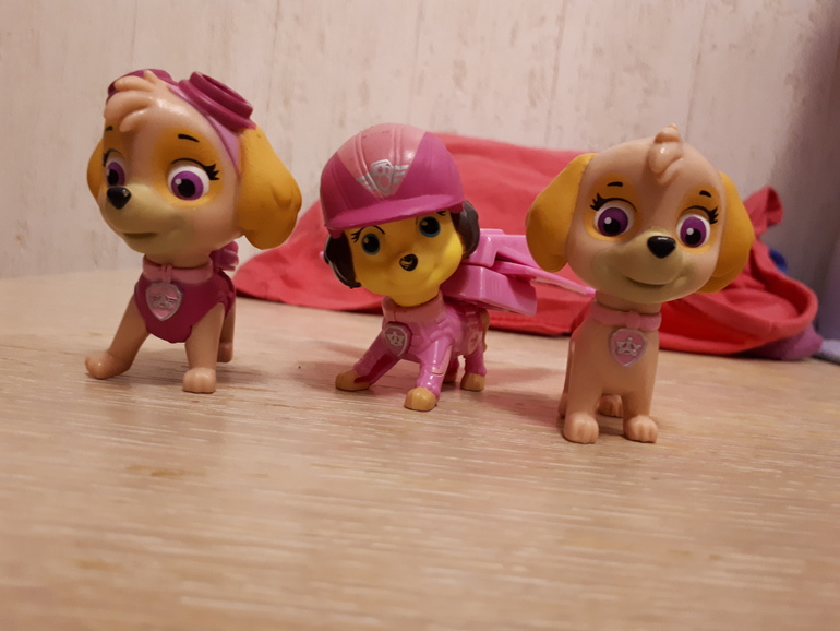 две скай оригинал, из набора с домиком, в середине копия из автомата с игрушками.