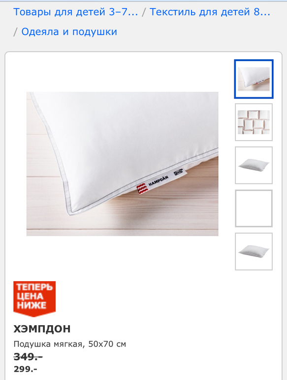 У нас такая, как на первом фото. Заказывала вместе с матрасом Орматек. Удобная, голова не потеет. Была как-то из Икеа подушка, на ней голова постоянно мокрая у дочки была.