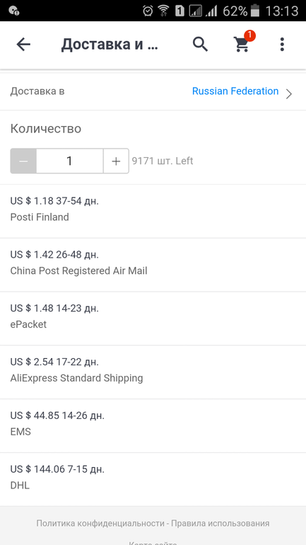 Покупки за рубежомДобрый день! Подскажите, знатоки, какую лучше доставку выбрать на али? Или они все примерно одинаковые, ну, кроме EMS и DhL?)