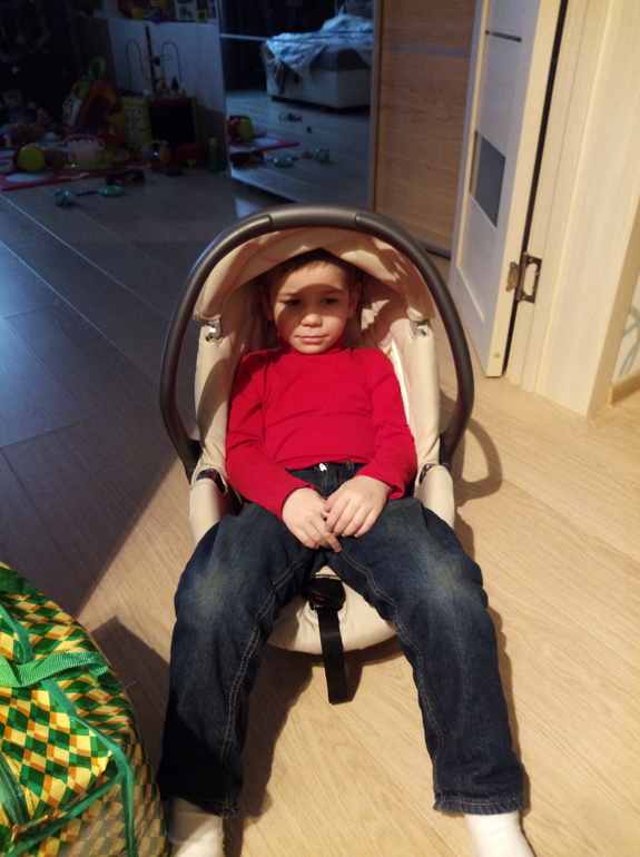 у нас тоже оно было:) удобное, на колесную базу легко ставилось и катилось. Пользовали где-то до 10 месяцев. Потом уже тяжело было таскать, если в клинике или еще где. У него, кстати, есть база с изофикс в машину. Чтоб не пристегивать каждый раз ремнями в машине.
