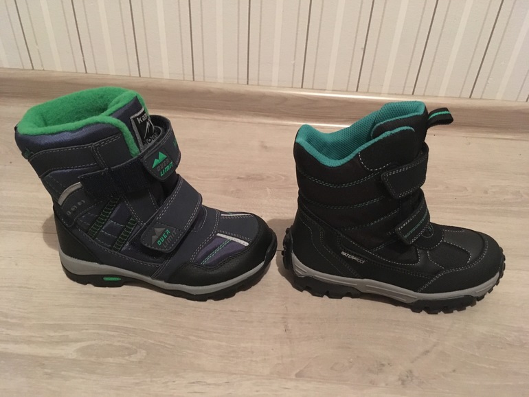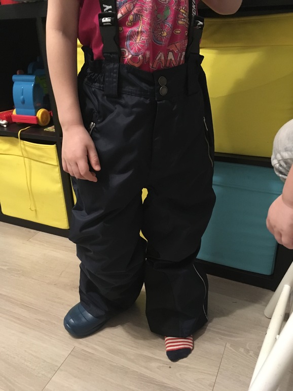 Вот сейчас на сыне 112 рост, широковат на худого, но носить в принципе можно, мы в начале зимы мерили гораздо шире полукомбинезоны, которые были по длине как раз, а здесь запас по длине на следующий год точно. Ботинок нашла только один, нужно было срочно, пока сын не очухался, и не начал снимать 😂