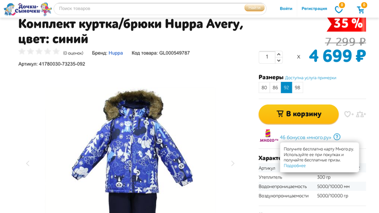 Плюс на следующий сезон взяла Хуппу 86 размера раздельный, куртка 300 грамм. Так вот она на ощупь тоньше этого комбеза 200 грамм. Не знаю даже....