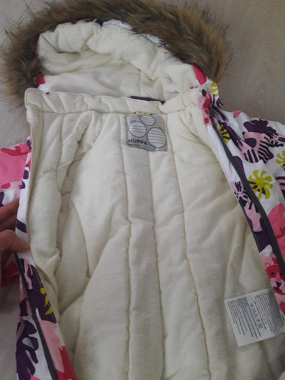 Нормальный комбез. Внутри флис, толстенький, мягкий. Ткань потоньше, чем в других разновидностях Хуппы. Плотная, но не грубая. Мы в эту зиму носим.