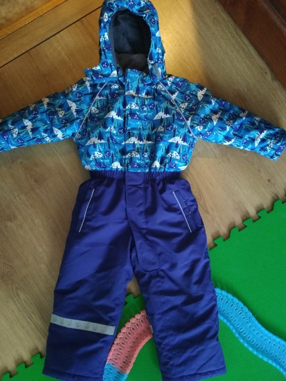 И костюм айспик, утеплителя 180 гр. старший сын носил его активно два сезона поэтому штаны протерлрсь снизу до дыр. Но есть ещё штаны токка трайб размер 110, старший сын сейчас в них ходит, они маломерят, поэтому думаю среднему на след зиму подойдут. Но они промокают в слякоть. Но не нравится что они без грудки, ребенок активный ползает везде валяется, снег будет внутри это 100%))) куртка айспик вот такая.