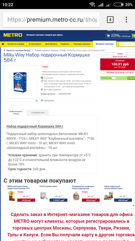 Спасибо,очень классные цены,еще M&Ms Игрушка-диспенсер драже с арахисом 90 г за 100р ,вот только доставка 350р,и только от 5000р бесплатная.