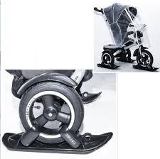 У нас с коляской в комплекте шли лыжи вместо колес одевались 4 штуки было, но я 2 штуками передними только поль3овалась.