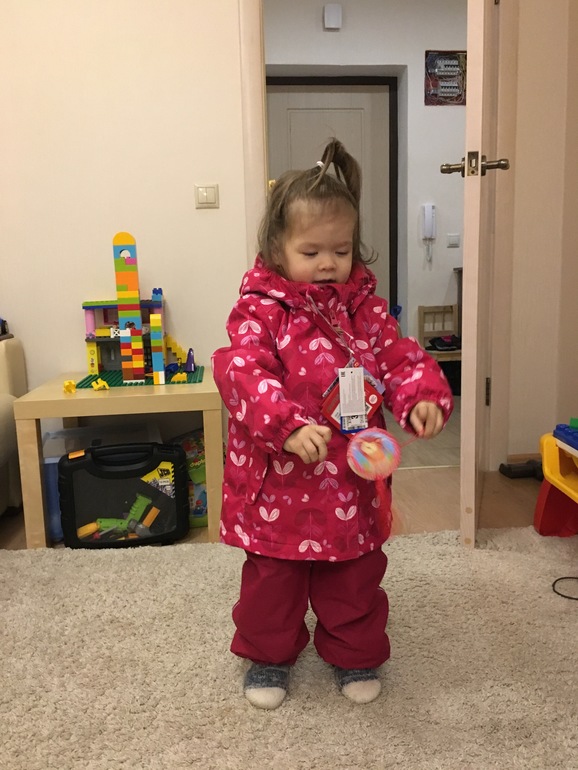 Утяжка есть, но не сильно она спасает(( куртку с джинсами особо не наденешь, снизу поддувать будет, только с полукомбезом тёплым. Это размер 98 на ребёнке 90 см, в следующем году должен лучше сесть, надеюсь) а капюшон-гномик у нас на слитнике будет)