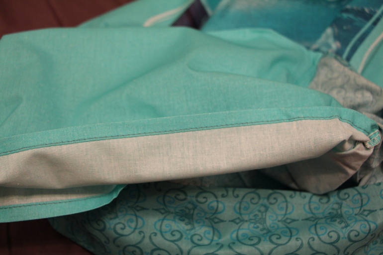 А вот мои фото,я его уже постирала и была приятно удивлена что он непускает краску,строчки ровные и аккуратные.
