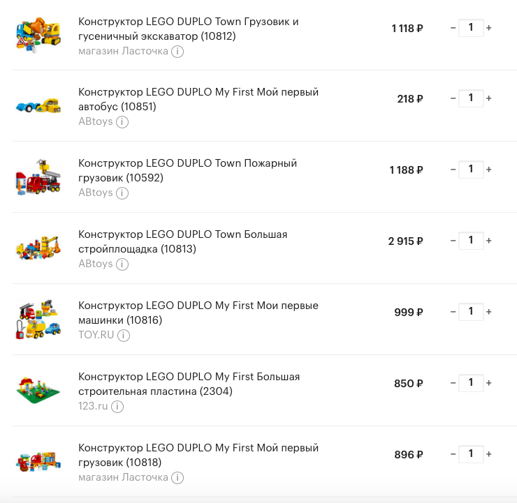 Из представленных у нас есть пожарная машина, мои первые машинки и пластина. Каждый набор интересный. Для первого раза если из маленьких наборов, то я бы взяла мои первые машинки, ребёнок будет учиться строить уже что-то конкретное. Пластина конечно вещь очень нужная, но это если кубиков достаточно, а если брать наборы что наверху, то она для них не нужна. 1 набор тоже интересный, но если склоняться к строительной технике, то я бы лучше взяла большую стройплощадку, т.к. во 1, она интереснее,больше вероятности, что заинтересует, а во 2 со списанием бонусов цена очень даже хорошая получается, лично я дешевле ее не видела. Потом без скидки легче решится докупить наборы по 1000, чем за 2900)
