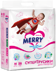 ПодгузникиПрихватили в дочках сыночках новинку - подгузники-трусики Merry. Внешне полный закос под меррисы, написано - японское качество. Стоили 899 за 58 штук.
