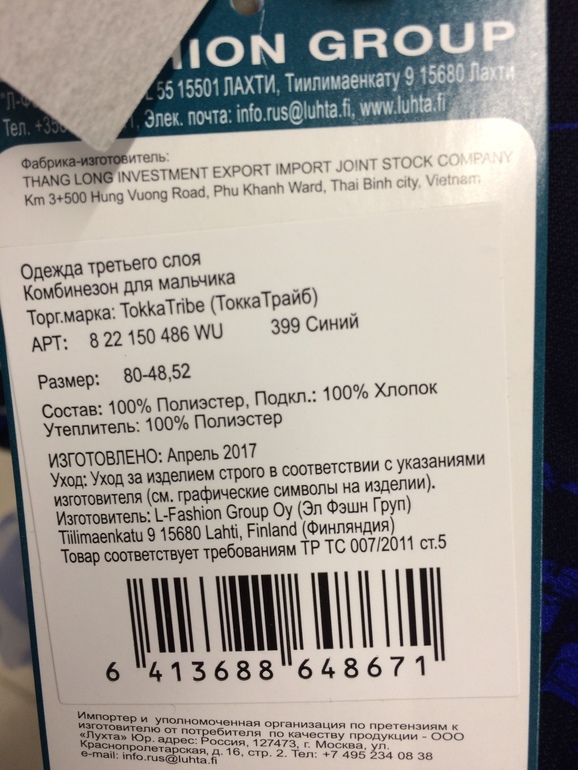 Сын родился в апреле 2016. Сейчас носим комбез токка размер 86, утеплителя 300 гр. Нам его как раз хватит до весны. Покупала в ноябре за 1800р.