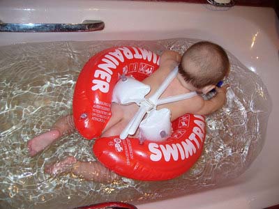 Горка-хрень. Стоит пылится. Сначала на руке купали, потом в ванну в шейный круг + аквамассаж