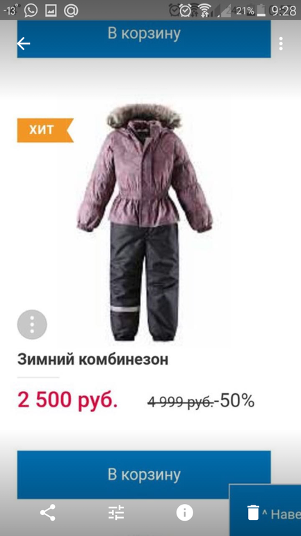 Только хвасты! (одежда и обувь)Помните лесси комбинезоны недавно все набирали по 1380 и 1700 на лессишоп по 180гр? Вот сейчас мои дети носят эти комбезы. Дочка на форму школьную прям одевает (сверху поло,,внизу леггинсы или штаны), она мерзлявая. А сын даже флиску не хочет одевать, иначе потеет, одевает прям на то, в чем в саду ходит -хлопковые штаны и футболка с коротким рукавом. И вот сегодня -13 и они так пошли. Вчера в -11 никто не замерз. Думаю, сегодня тоже не замерзнут. Дочка еще на коньках катается.