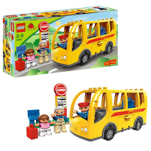у нас был белый с зеленым, точная копия городских автобусов в москве. двери отурывались, но вот посадить туда кого то сложно. если тольео лежа запихать человечка лего.