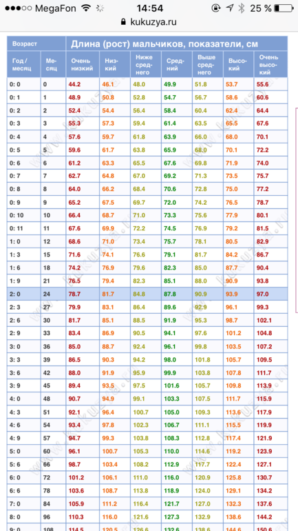 Вот примерная таблица, судя по ней я бы рассчитывалась на рост около 86 к началу сезона