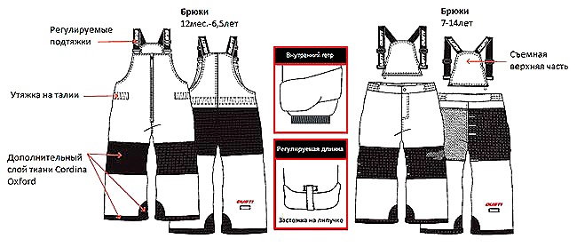 Кроме того, внутри брючин имеются снегозащитные гетры с прорезиненным кантом, которые не позволяют штанинам задираться и попадать снегу и влаге внутрь.