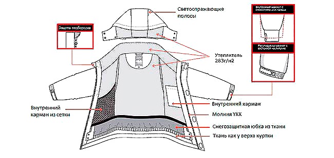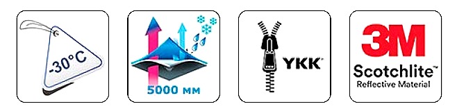 На рукавах предусмотрены внутренние трикотажные манжеты, снаружи манжеты куртки регулируются в объёме с помощью липучек.