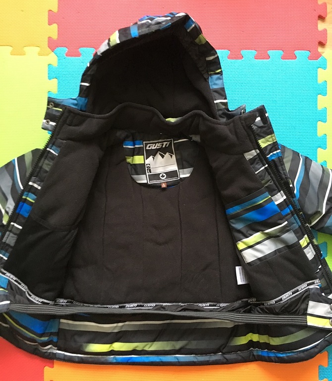 Внешняя ткань куртки - мембрана с показателями водостойкости 5000 мм и паропронецаемости 5000 ед, благодаря чему ребёнок должен оставаться сухим и тёплым. Верхняя ткань обработана DWR «антигрязь» и это чувствуется! Я уже брала комбезы с подобной пропиткой, осталась довольна: грязь не въедается, легко стирается тряпочкой или не отходя от кассы влажной салфеткой.