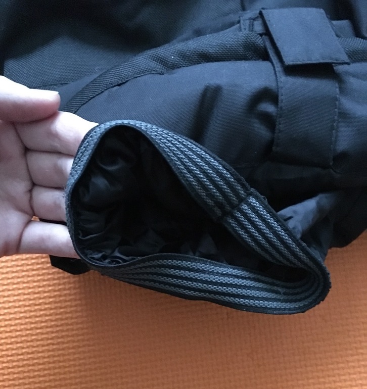 Внизу брючин есть лямочки, которые можно продеть в петельку, и закрепить липучкой, тем самым закатать брюки и зафиксировать их, спасая от трения об асфальт.