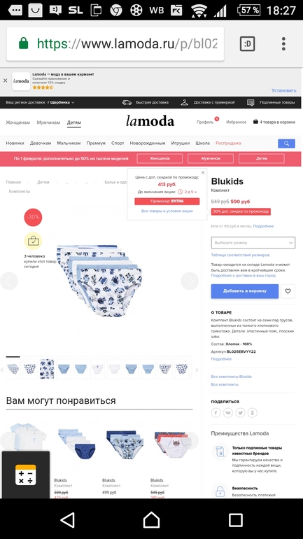 Можно у вас напишу? Сегодня уже заказала трусов https://www.lamoda.ru/p/bl025ebvyy22/clothes-blukids-komplekt/