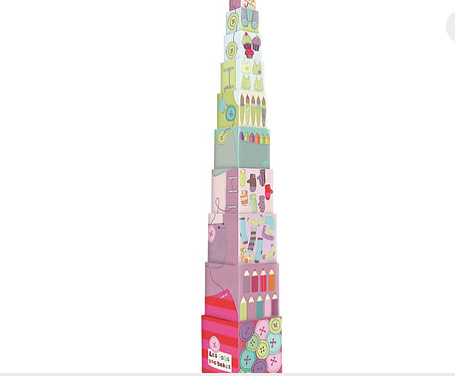 нам очень нравятся вот такие - французские, очень яркие, из плотного картона. Можно складывать друг в друга или строить пирамидку.