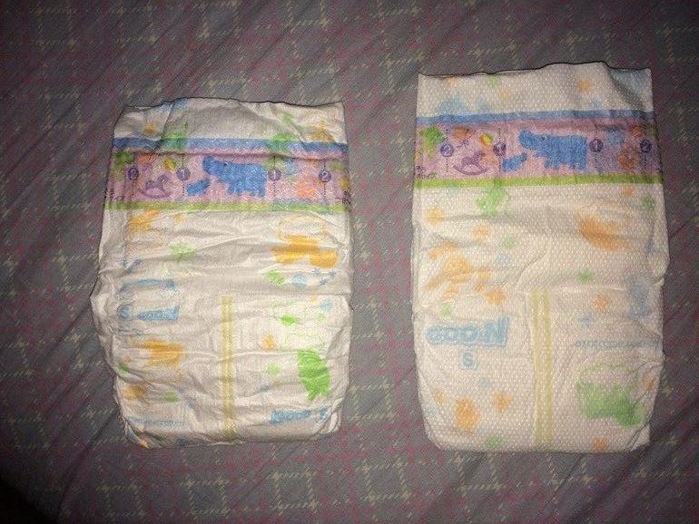ПодгузникиДевочки, вопрос к подгузниками Goon открыли новую упаковку и я поняла что разница огромная!!! Попа мокрая и красная! Дочь капризничает в них ужасно, неужели подделка?