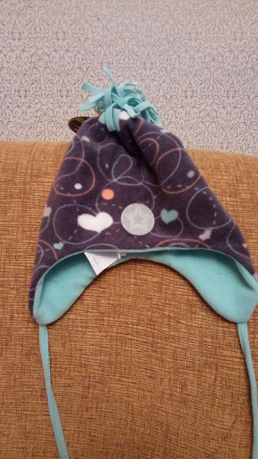 Детская одеждаНашлась в запасах. Оказалось здорово подходит расцветка к зимнему комплекту на следующий год. Не понятно только, дорастём ли))) Вопрос - на какую температуру вы подобную носите? Она флис на флисе + силиконовые по ощущениям какие-то вставки в районе ушей, я так понимаю против ветра. Вот она шапка.