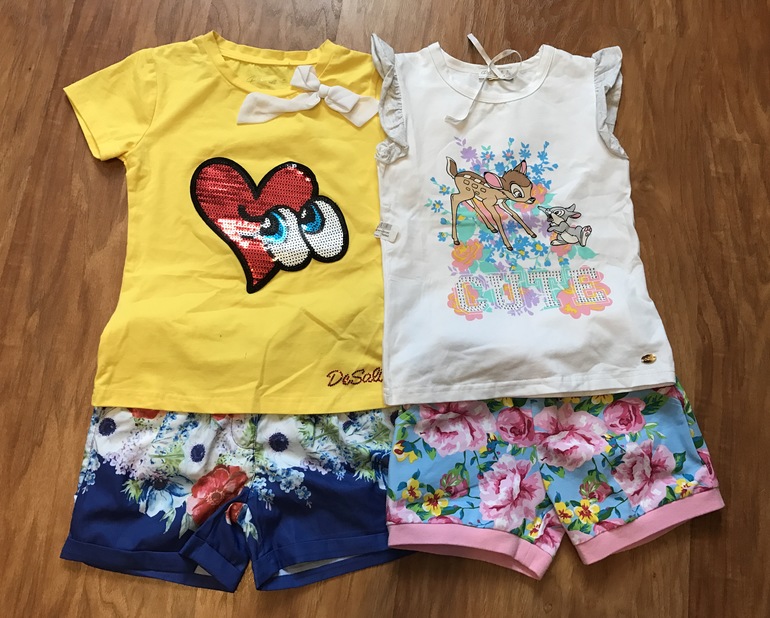 Да, комплектами очень удобно покупать, иначе что-то будет лежать или дома только одеваться. нам тут в фамилию завозили де салитто красивые вещички летние, а я не успела, все раскупили, только платье одно и прихватила)) слева,у Вас шортики из этой же коллекции)))