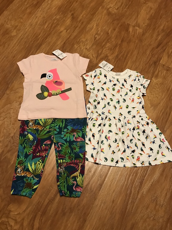 Очень красиво! Все яркое такое.:) У нас тоже есть Некст такое платье с птичками и набор лосинок с птичками. И Акула футболка с попугаями такая же есть. Меня на птичек потянуло. Дочка ещё маленькая, но скоро дорастём до своих нарядов.:)))