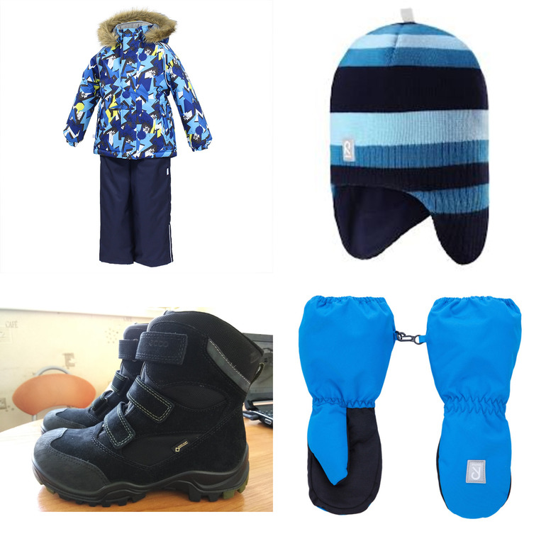 Ну и на через зиму: Хуппа (возможно пойдет в пристрой), но пока есть. Шапка и варежки Рейма, сапоги Экко.