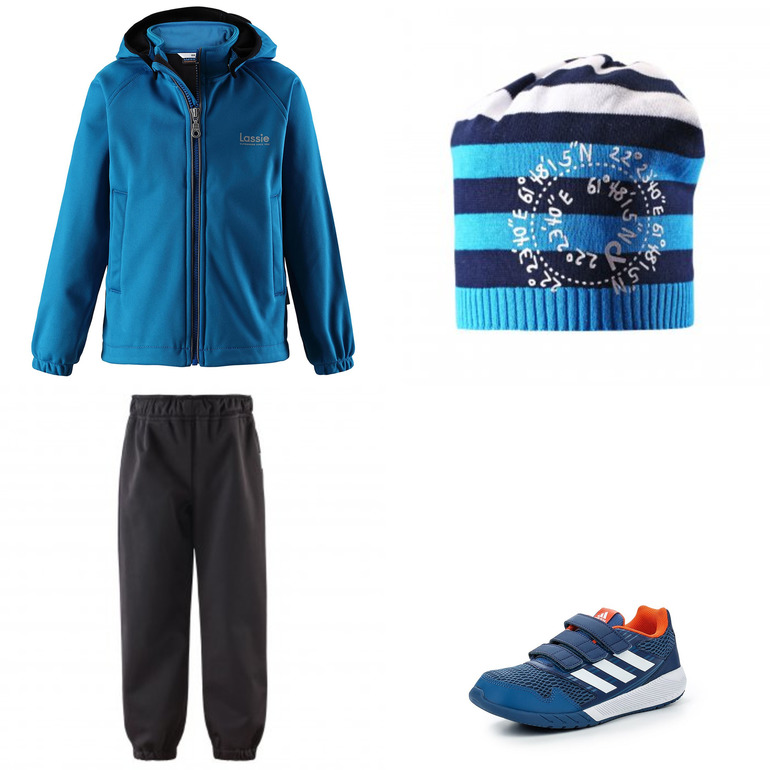 Куртка и штаны Лесси софтшелл, шапка Рейма, кроссы Адидас