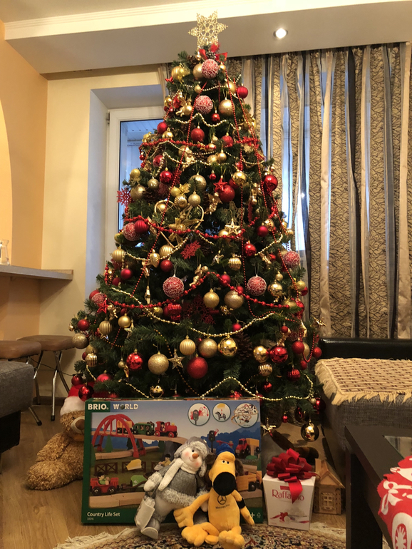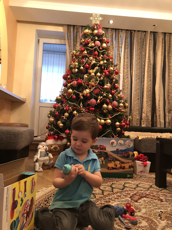 Затем решили купить amber из любимых Polli и машинку на р/у Билли большие колёса. Поставили елку где-то за 1,5 недели до нг, наряди ее пока ребёнок спал и тут как всегда меня осенило: сын увидит ёлку первый раз за этот год, а подарков под ней не будет, не порядок. Как все уже поняли положили мы под неё и эти подарки😂